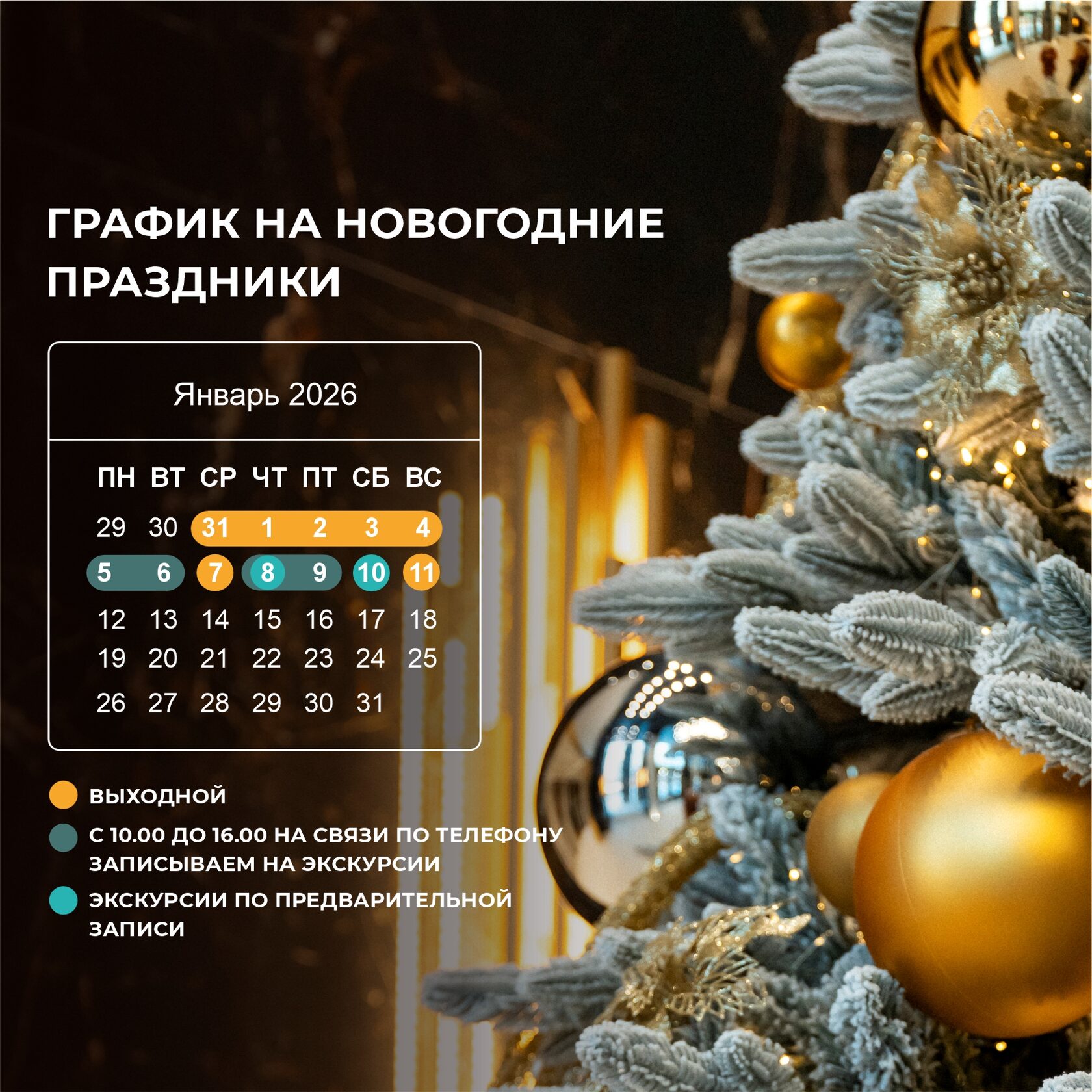 8 и 10 января – проводим экскурсии по предварительной записи